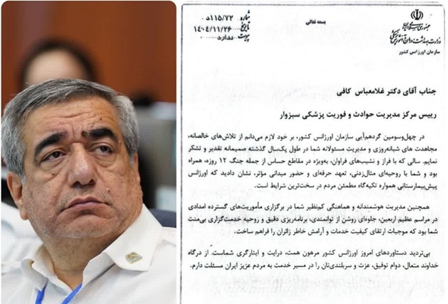 تقدیر رئیس سازمان اورژانس کشور از غلامعباس کافی رئیس اورژانس دانشگاه علوم پزشکی سبزوار به‌دلیل عملکرد مطلوب اورژانس ۱۱۵ سبزوار