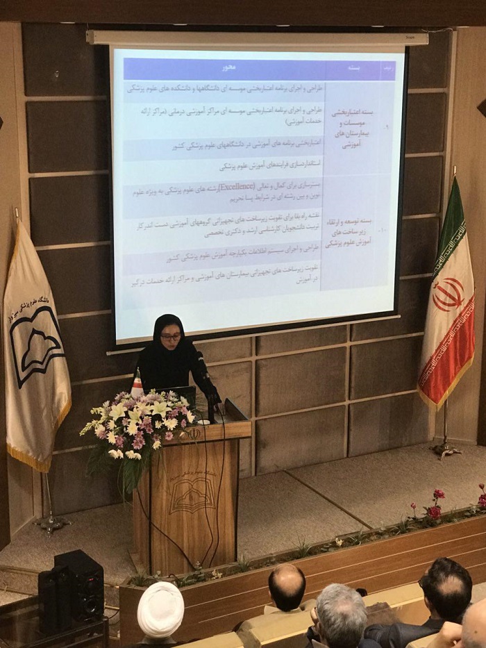 در این مراسم خانم دکتر آگاه معاون آموزشی دانشگاه ضمن خوشامدگویی، روز معلم را به اساتید جمع حاضر تبریک گفتند. ایشان ضمن قدردانی از تمامی دست اندرکاران  در راستای دستیابی به اهداف طرح تحول و نوآوری در آموزش ابراز امیدواری نمودند با حمایتهای ریاست دانشگاه و حضور پررنگ تر اعضای هیات علمی شاهد پیشرفت قابل توجهی در پیاده سازی بسته های طرح تحول در آموزش باشیم.