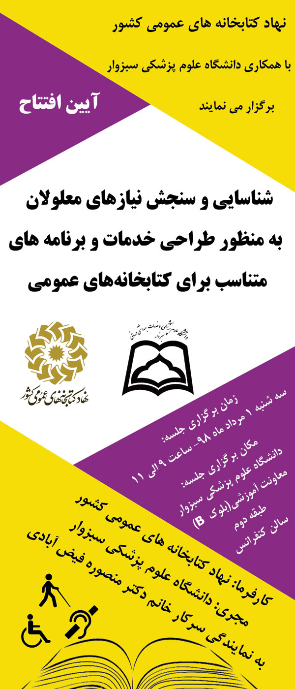 طرح پژوهشی "شناسایی و سنجش نیازهای معلولان به منظور طراحی خدمات و برنامه های متناسب برای كتابخانه‌های عمومی"