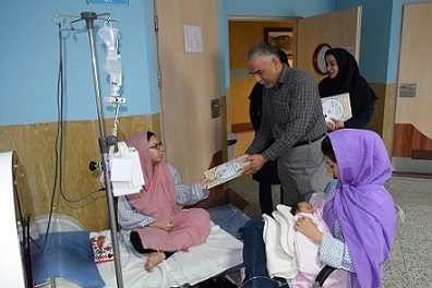اهدا بسته اموزشی بین مادران شیرده بیمارستان حشمتیه با حضور مدیریت و مدیر پرستاری