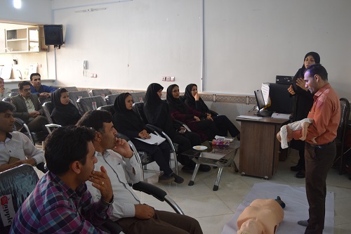 برگزاری جلسه آموزشی با عنوان کمک های اولیه در شرایط اضطراری برای پرسنل شبکه بهداشت ودرمان و دانش آموزان هنرستان جوادیه