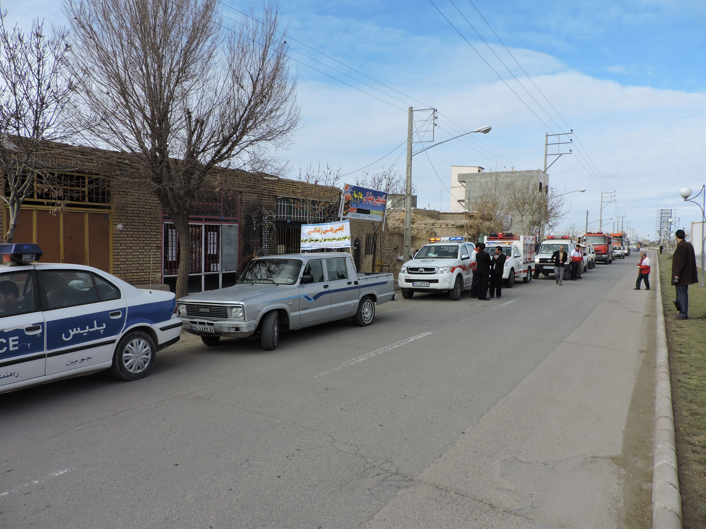 برگزاری مانور خودرویی به مناسبت هفته ایمنی در برابر زلزله و بلایای طبیعی درجوین