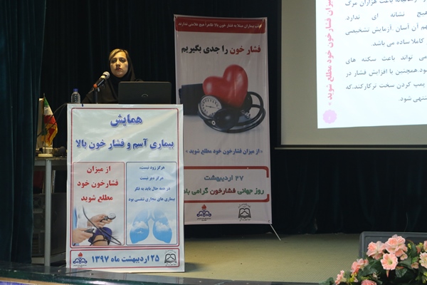 در ادامه همایش بعد از پخش کلیپ آموزشی در مورد بیماری فشارخون؛ دکتر زهرا میرحسینی فوق تخصص کلیه ومجاری ادرار (نفرولولوژیست) در مورد بیماری فشارخون بالا، علائم، راه های پیشگیری و سبک زندگی سالم سخنرانی نمود./140