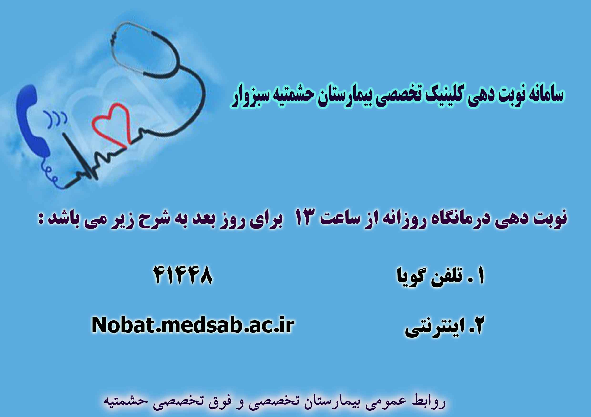 تغییر ساعت سامانه نوبت دهی بیمارستان حشمتیه سبزوار