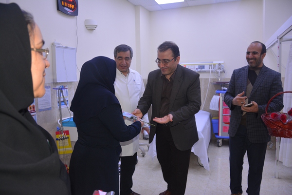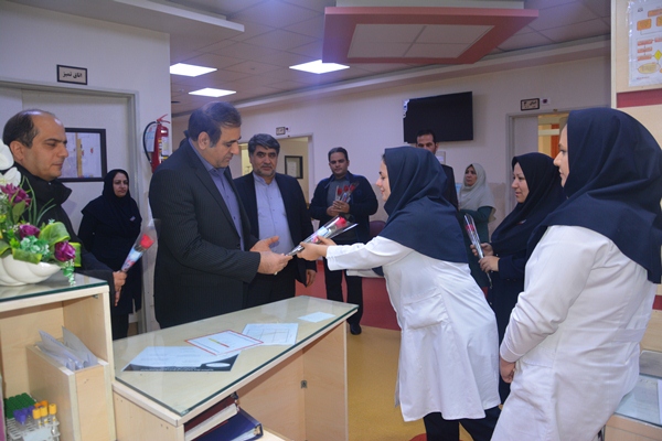 به مناسبت روز پرستار ریاست محترم دانشگاه جناب آقای دکتر مسلم به همراه فرماندار محترم ونماینده محترم مجلس جناب آقای سبحانی و هیات همراه با اهدای گل از پرستاران بیمارستان شهیدان مبینی تقدیر به عمل آوردند .