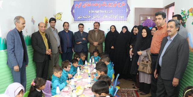 همزمان باروزجهانی غذا ، برنامه یک وعده غذای گرم در مهد های کودک روستایی وحاشیه شهر در سال تحصیلی 95-96 در شهرستان سبزوار شروع شد در این روز برنامه مهدهای کودک روستایی وحاشیه شهر با همت اداره بهزیستی در مهد کودک کوثر روستای ایزی بصورت نمادین افتتاح گردید . این برنامه باهمکاری مشترک اداره بهزیستی ومعاونت بهداشتی دانشگاه در کلیه مهد های کودک روستایی وحاشیه شهر سبزوار جهت کودکان 6-3 سال اجرا می گردد.