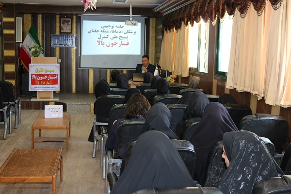 روابط عمومی شبکه بهداشت ودرمان جغتای/ جلسه توجهی و آموزشی بسیج ملی کنترل فشارخون بالا ویژه پرسنل شبکه بهداشت ودرمان جغتای (نیرو های ستادی،پزشکان،کارشناسان،ماماها، بهورزان و...) توسط واحد بیماریها درمحل سالن اجتماعات شبکه برگزارشد.
