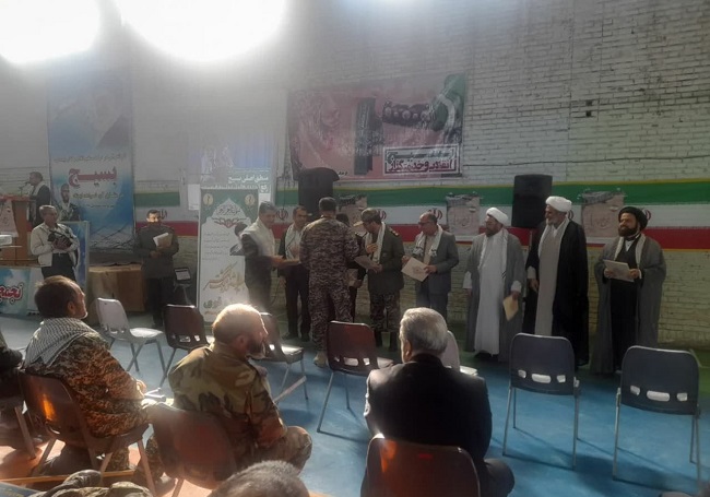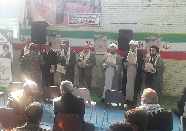 روابط عمومی شبکه بهداشت و درمان شهرستان جغتای/ به مناسبت هفته بسیج و پنجم آذرماه سالروز تشکیل بسیج به فرمان حضرت امام خمینی(ره) و اجتماع عظیم بسیجیان شهرستان (برنامه شکوه و اقتدار) وهمزمان با سراسرکشور، غلامرضا شرفی سرپرست شبکه بهداشت، مدیر و اعضای کانون بسیج جامعه پزشکی شهرستان جغتای با حضور پرشور خود در این مراسم، بار دیگر ضمن آمادگی خود، با ولایت و آرمانهای انقلاب اسلامی تجدید میثاق کردند.