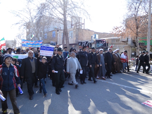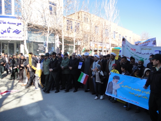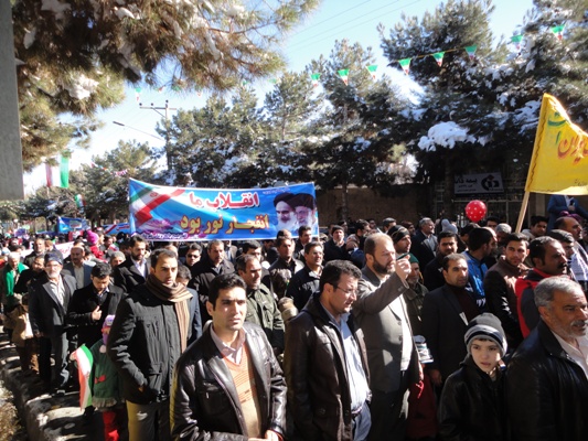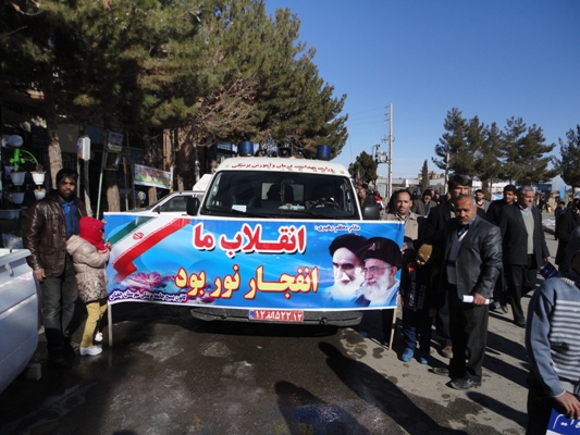 به مناسبت بیست دوم بهمن ماه 94 و سی و هفتمین جشن انقلاب ، پرسنل و بسیجیان کانون بسیج جامعه پزشکی شبکه بهداشت ودرمان و بیمارستان ولی عصر(عج) شهرستان جغتای به همراه دیگر اقشارمردم با شرکت در راهپیمایی این روز ، ضمن تجدید میثاق با ولایت وآرمانهای انقلاب اسلامی ، برائت وانزجارخود را از آمریکا ،اسرائیل غاصب وکشورهای هم پیمان آنها اعلام نمودند.