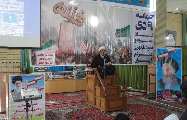 در ادامه حجت الاسلام موحدی پور نماینده ولی فقیه و امام جمعه شهرستان سخنانی در خصوص حماسه 9دی و استکبارستیزی ایراد نمودند.