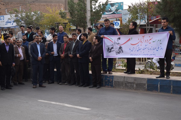 همزمان با راهپیمایی مردمی 13 آبان و روز دانش آموز، کارکنان این اداره با حضور در این مراسم، هم صدا با مردم با شعار مرگ بر استکبار و مرگ بر آمریکا، یوم الله 13 آبان را گرامی داشتند.