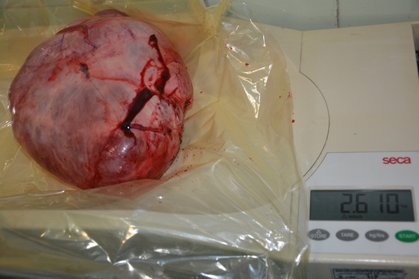 خروج توده 2610 گرمی تخمدان از شکم بیمار 39 ساله در بیمارستان شهیدان مبینی