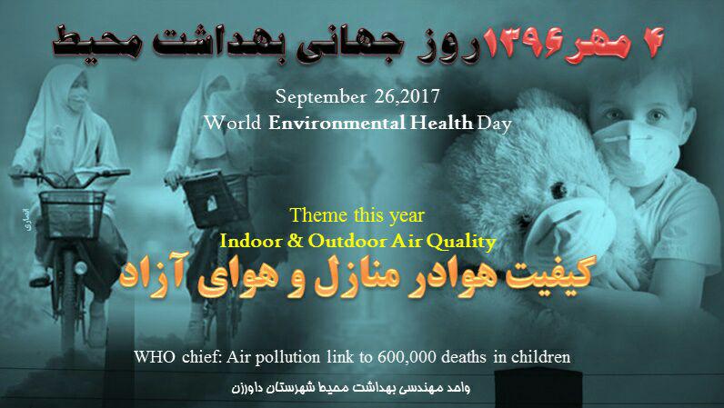 روز جهانی بهداشت محیط با شعار کیفیت هوای منازل و هوای آزاد می تواند فرصتی باشد که با آگاه سازی عموم مردم در خصوص منابع ایجاد آلودگی و اثرات آن بر سلامتی و راههای بهبود کیفیت هوا، گامی موثر در کاهش بار بیماریها و عوارض ایجاد شده ناشی از آلودگی هوا  بخصوص در افرادی مانند زنان غیر شاغل و کودکان که ساعتهای متوالی در محیط بسته(منازل) حضور دارند و در معرض هوای آلوده هستند، برداشته شود.