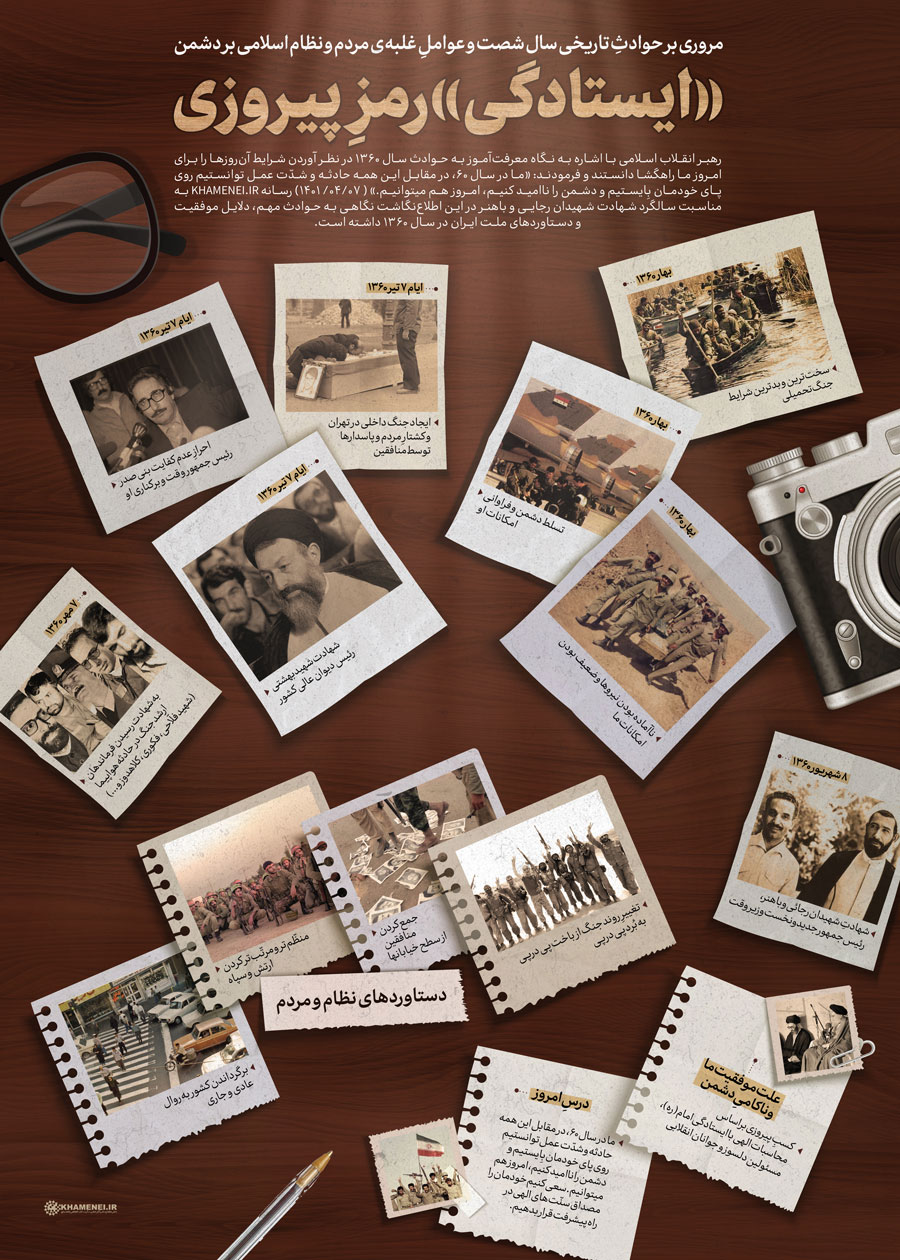 هبر انقلاب اسلامی با اشاره به نگاه معرفت‌آموز به حوادث سال ۱۳۶۰ در نظر آوردن شرایط آن‌روزها را برای امروز ما راهگشا دانستند و فرمودند: «ما در سال ۶۰، در مقابل این همه حادثه و شدّت عمل توانستیم روی پای خودمان بِایستیم و دشمن را ناامید کنیم، امروز هم میتوانیم.» (۱۴۰۱/۰۴/۰۷