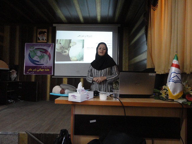 سپس در ادامه کیوانلو مشاور شیردهی، با ابراز تأسف ازاینکه آمارها نشان دهنده آن است که در سال های اخیر میزان شیردهی در مادران ایرانی کاهش یافته است، از این رو با توجه به اهمیت تغذیه با شیر مادر، بر آن شدیم که با افزایش سطح آگاهی همکاران آموزش های شیردهی به مادران را گسترش داده تا بدین وسیله موجب افزایش ارتقاء سلامت جامعه گردد،کارگاه با تمرین عملی نحوه صحیح شیردهی توسط کیوانلو به پایان رسید.