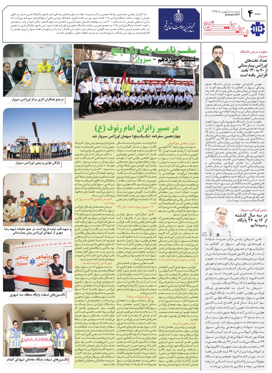 بازتاب مرکز فوریت های پزشکی سبزوار در نشریه تخصصی اورژانس کشور