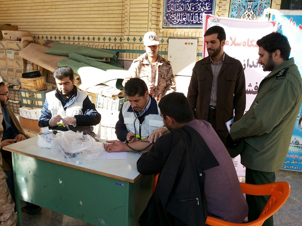 در این روز فشار خون و قند خون مراجعین توسط کارشناسان پرستاری ونیروهای بهداشتی عضوکانون بسیج جامعه پزشکی شهرستان اندازه گیری وآموزشهای لازم ومشاوره پزشکی ارائه شد.