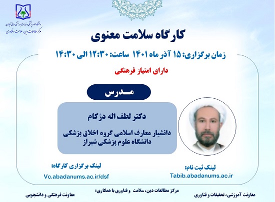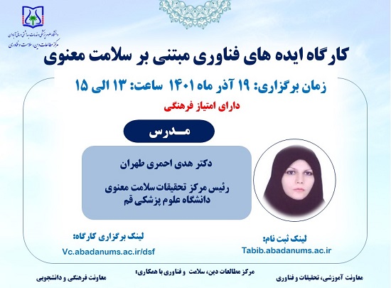 برگزاری مجموعه کارگاه های مرکز مطالعات دین،سلامت و فناوری دانشگاه علوم پزشکی آبادان دارای امتیاز فرهنگی