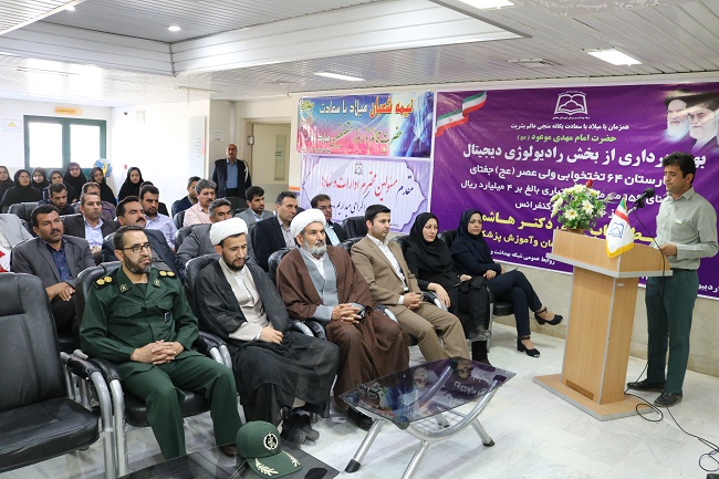 در ادامه از طریق ویدئو کنفرانس با حضور وزیر بهداشت و مسئولین دانشگاه، دکتر روستا زاده ریاست شبکه بهداشت و درمان ضمن خوش آمد گویی و تبریک ایام شعبانیه  و تشکر از دکتر هاشمی وزیر بهداشت و درمان کشور و سایر مسئولین دانشگاه  درمورد مشخصات پروژه رادیولوژی دیجیتال بیمارستان ومزایای آن که شامل: افزایش کیفیت موثر تصویر، صرفه جویی در وقت و هزینه و سرعت بالای تهیه تصویر، امکان کپی فیلم با سهولت بیشتر، افزایش تصاویر بایگانی ، امکان ارسال تصاویر از طریق اینترنت به مراکز درمانی و امکان دسترسی پزشک به تصاویر به محض انجام تصویر برداری می باشد، بیان نمودند.  سپس  پروژه با دستور دکتر هاشمی، توسط موحدی پور افتتاح، و در پایان از میهمانان تقدیر و پذیرایی به عمل آمد.