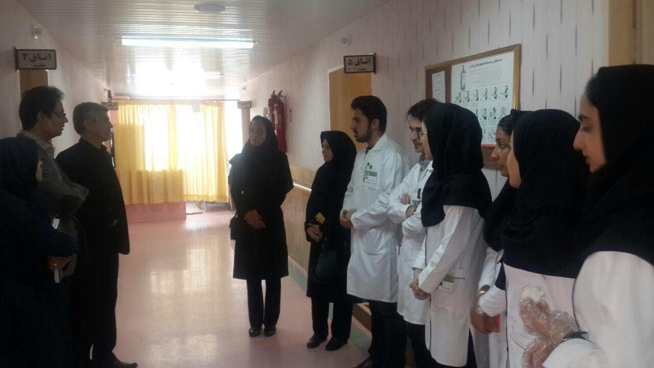 بنا به گزارش روابط عمومی معاونت های آموزشی فرهنگی دانشجویی وتحقیقات صبح امروز دکتر نخعی معاون آموزشی در معیت مسئولین وروسای دانشکده های پرستاری مامایی وپیراپزشکی باحضور در مرکز آموزشی وپژوهشی بیمارستان واسعی سبزوار از روند رسیدگی وکیفیت عملکرد دانشجویان پرستاری  در زمینه های مختلف آموزشی بازدید کردند ودر خصوص کیفیت مطلوبتر موارد آموزشی و نهایتا منشور حقوقی بیمار  توصیه های لازم را ارائه نمودند،/130