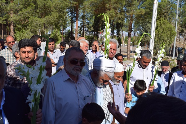 حاملان پرچم بارگاه رضوی در میان استقبال گرم و پر شور مردم شهرستان داورزن، امام جمعه و نماینده ولی فقیه، فرماندار، پرسنل شبکه بهداشت و درمان و سایر ادارات وارد شهرستان داورزن شدند