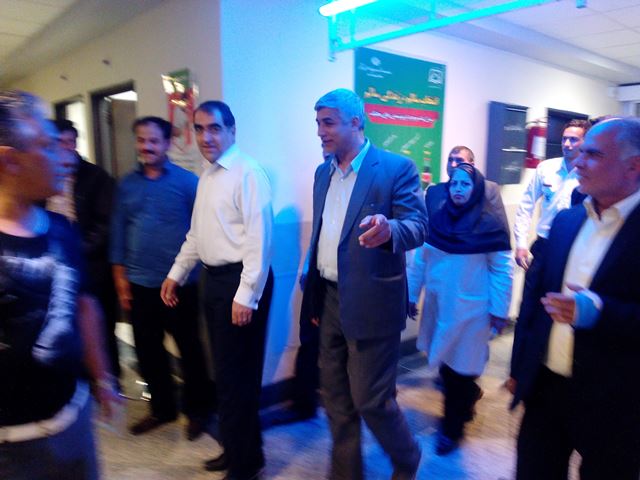 روابط عمومی شبکه بهداشت و درمان شهرستان داورزن/ در شامگاه هفتم فروردین 1396 دکتر هاشمی وزیر بهداشت، درمان و آموزش پزشکی، بعد از اقامه نماز مغرب و عشاء در پایگاه اورژانس 115 داورزن، از مرکز بهداشتی درمانی شبانه روزی با امکانات بستری داورزن بازدید و ضمن تبریک سال نو به همکاران شیفت شب و عرض خسته نباشید در ایام تعطیلات نوروز، از قسمتهای مختلف مرکز بازدید نموده و از نزدیک با پرسنل و مردم ملاقات نمود.