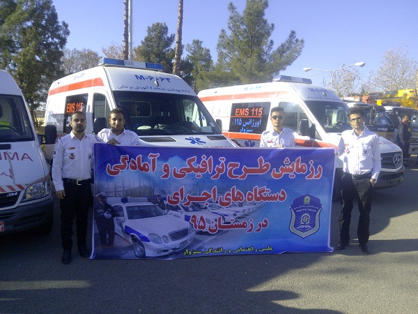 روابط عمومی اورژانس 115 سبزوار / رزمایش نیروهای اجرایی و عملیاتی شهرستان سبزوار صبح امروز 95/9/22 در ساعت 9:00 با همراهی پلیس راهور شهرستان برگزار شد .