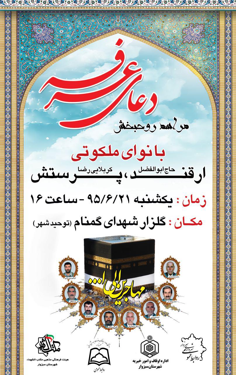 مراسم دعای روح بخش عرفه و برائت از مشرکین  با همکاری روابط عمومی دانشگاه ، شهرداری ، اداره اوقاف و امور خیریه و هیئت فرهنگی مکتب الشهداء در گلزار شهدای گمنام توحید شهر  یکشنبه 21 شهریور ماه ساعت 16 برگزار می شود .