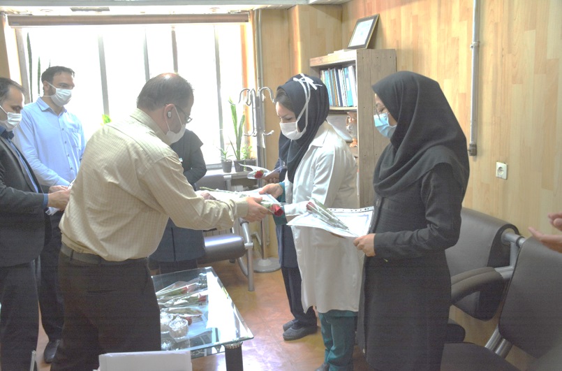در ادامه این دیدار با اهدا لوح تقدیر و گل از پرستاران بهبود یافته مبتلا به کرونا تقدیر شد