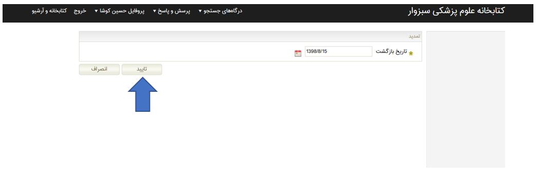 با مشاهده تاریخ بازگشت از تمدید مدارک امانتی خود اطمینان حاصل کنید. تایید تمدید