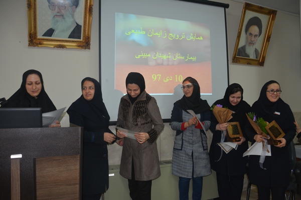 همایش 2 ساعته ترویج زایمان طبیعی روز دوشنبه 10 دی ماه 97 در سالن اجتماعات بیمارستان برگزار گردید.در این همایش از 40 نفر از مادران باردار دعوت به عمل آمد .خانم دکتر مونا جعفریان متخصص زنان وزایمان و خانم دکتر سهیلی راد متخصص نوزادان در خصوص فواید زایمان طبیعی وعوارض سزارین در مادر ونوزاد سخنرانی نمودند . همچنین از طرف معاونت محترم درمان به پرسنلی که در ترویج زایمان طبیعی مشارکت فعال دارند نیز لوح تقدیر اهدا گردید .در پایان از مطالب ارائه شده در همایش سئوالاتی مطرح شد که به برگزیدگان جوایزی اهدا گردید.