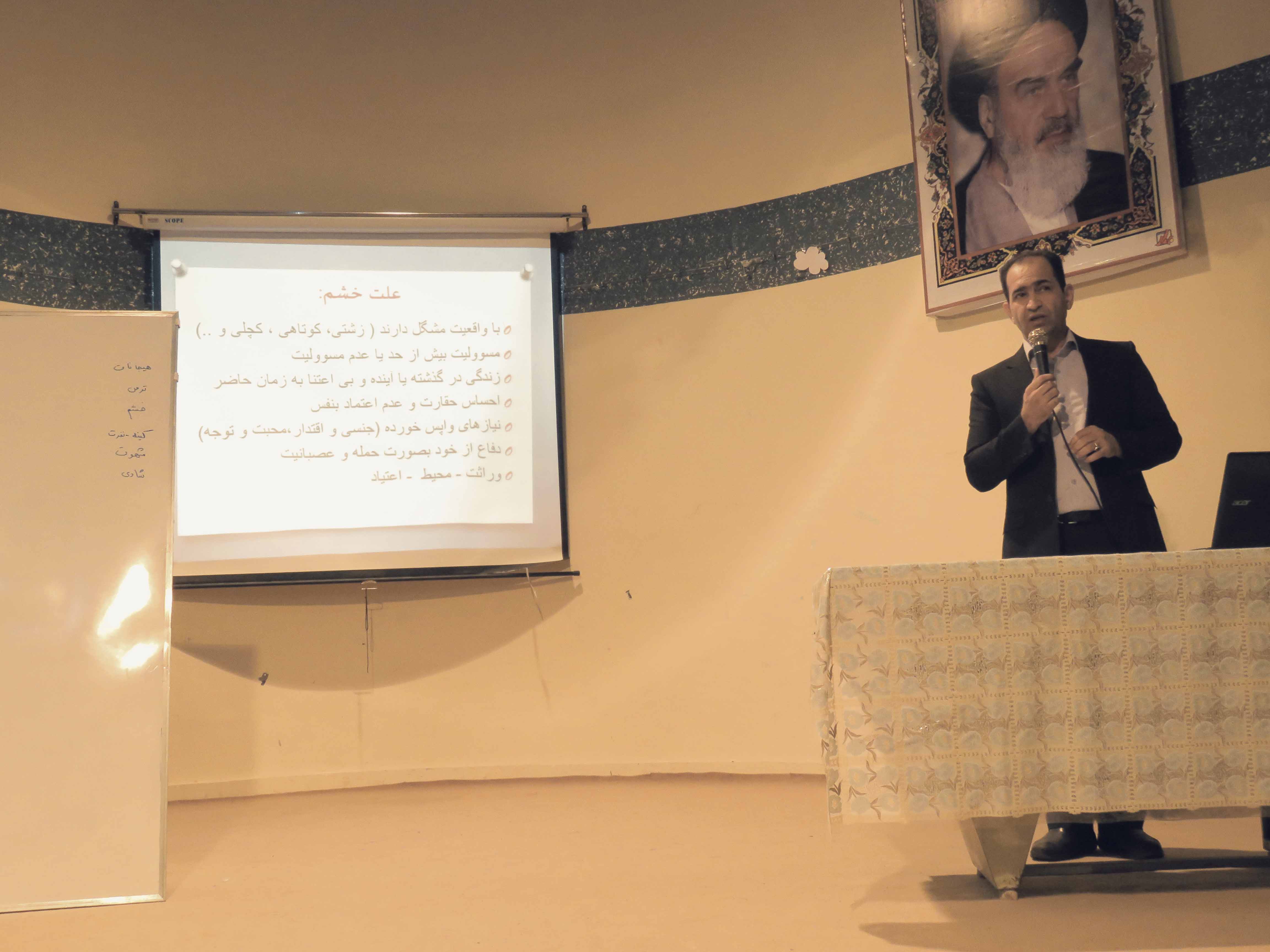 در این کارگاه آموزشی که توسط مدرّس دانشگاه (آقای احمد مختاری‌فر) ، مباحث عدیده‌ای با موضوعیت معنونه مشتمل بر (علل ایجاد خشم، واقعیت‌ها، تأثیر در زندگی روز مره، هوش و هیجانات، عواقب، شیوه‌های عملی برای کنترل خشم و ...) با حضور بالغ بر 200 نفر از خانواده‌ها انجام پذیرفت.