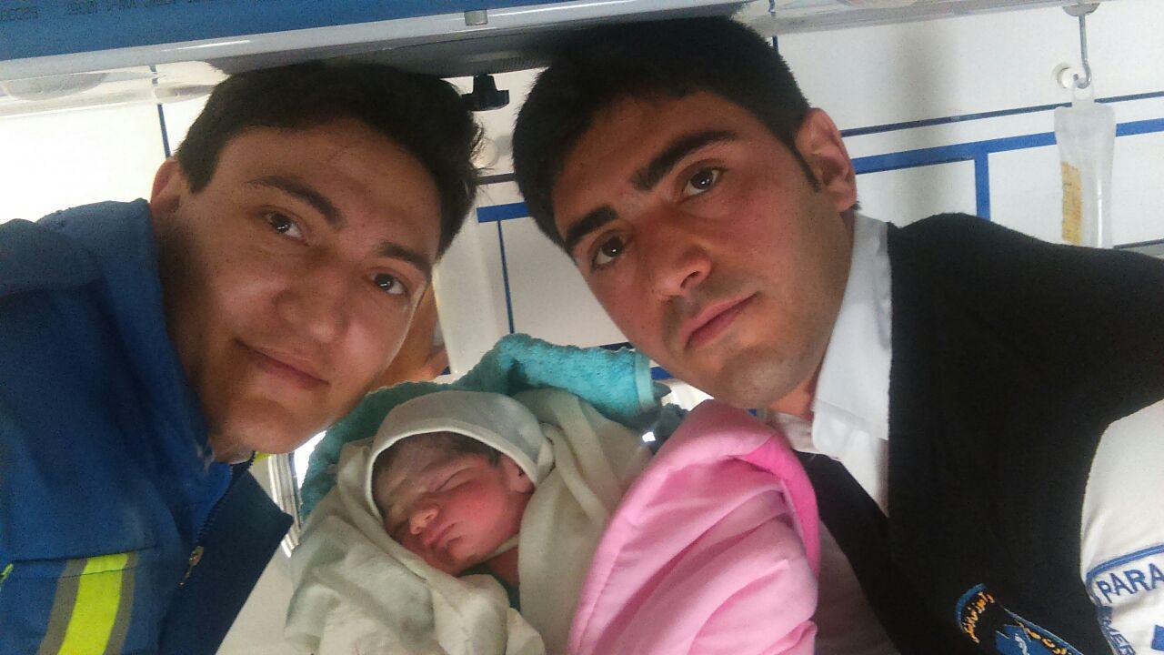 به محض رسیدن به محل مادر باردار را تحت مراقبت به داخل آمبولانس انتقال دادند که با توجه به رسیدن زمان زایمان ، عملیات زایمان با موفقیت انجام پذیرفت و نوزاد پسر به دنیا آمد.