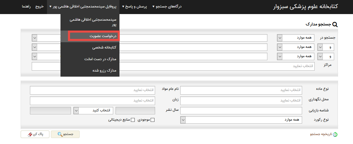 بعد از ورود با کلیک بر روی پروفایل ، درخواست عضویت را انتخاب نمایید: