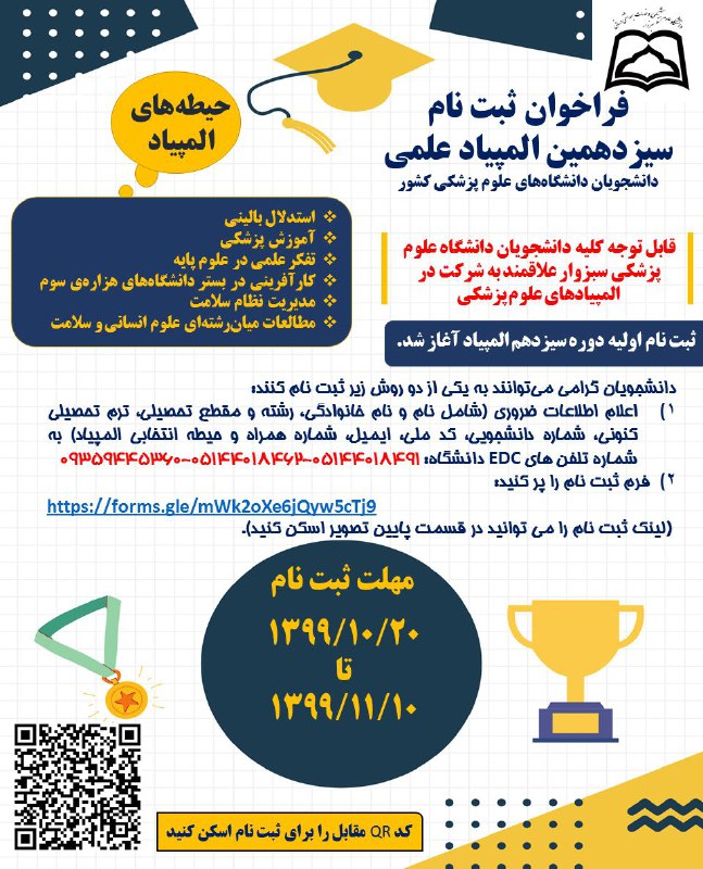 فراخوان ثبت نام اولیه سیزدهمین دوره المپیاد دانشگاه های علوم پزشکی کشور