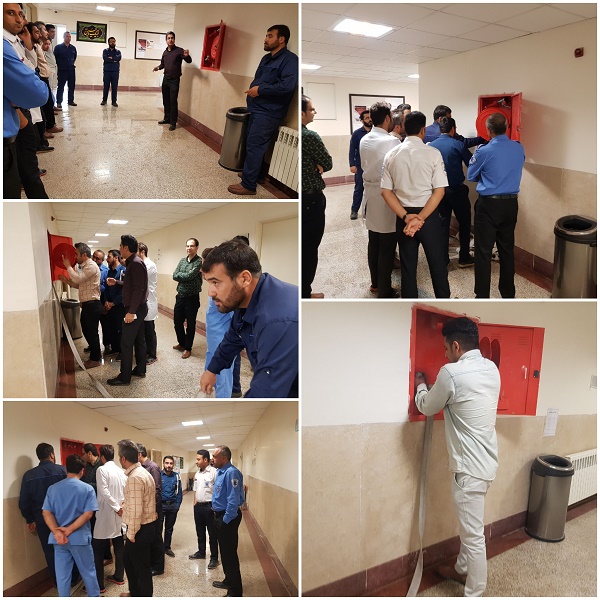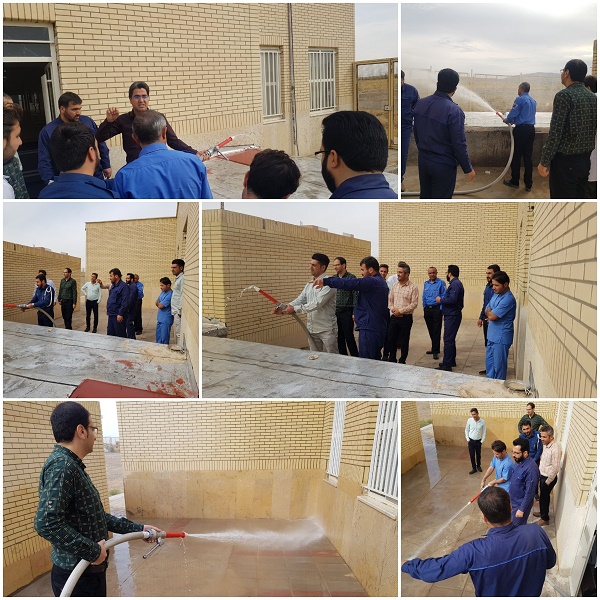 شایان ذکر است حسن مومنی کارشناس بهداشت حرفه ای به صورت تئوری نحوه اتصال شیلنگ ها و نازل و نکات ایمنی هنگام استفاده از فایر باکس را آموزش دادند و در ادامه افراد حاضر به صورت عملی از شیلنگ جعبه آتش نشانی استفاده کردند.