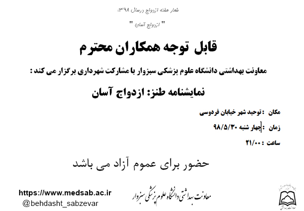 معاونت بهداشتی دانشگاه علوم پزشکی سبزوار با مشارکت شهرداری برگزار می کند