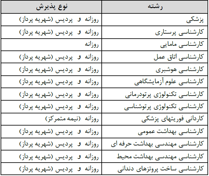 رشته های تحصیلی دانشگاه علوم پزشکی از طریق آزمون سراسری