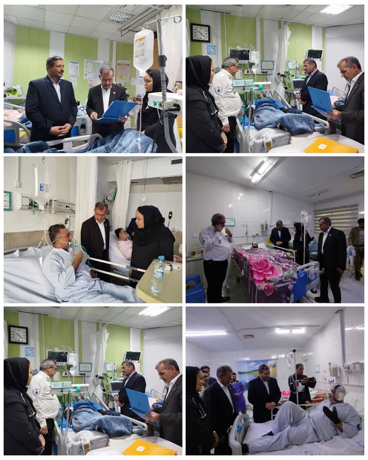 آقای دکتر قربانی ضمن دیدار با آسیب دیدگان، پزشکان و پرسنل بیمارستان، فعالیت های مجموعه دانشگاه علوم پزشکی از اولین لحظات این رخداد تا کنون را قابل تقدیر دانستند.