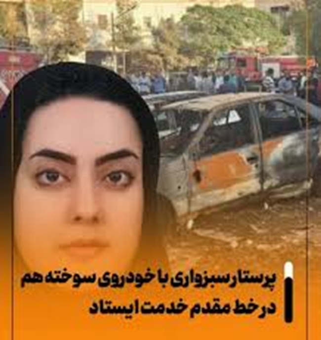 به گزارش وبدا، زهرا آزاده، پرستار سبزواری، بر اثر ریزش قطعه‌ای آتشین بر خودروی شخصی‌اش افتاد و لحظه‌ای بعد، خودرو کاملاً شعله‌ور شد. اما پرستار، بی‌اعتنا به دارایی در حال سوختنش، کارش را رها نکرد و به مداوای سرپایی مصدومان دیگر پرداخت؛ حتی گزارش‌های اورژانسی را نوشت تا آمبولانس‌ها معطل نشوند و جان‌های بیشتری نجات پیدا کنند.