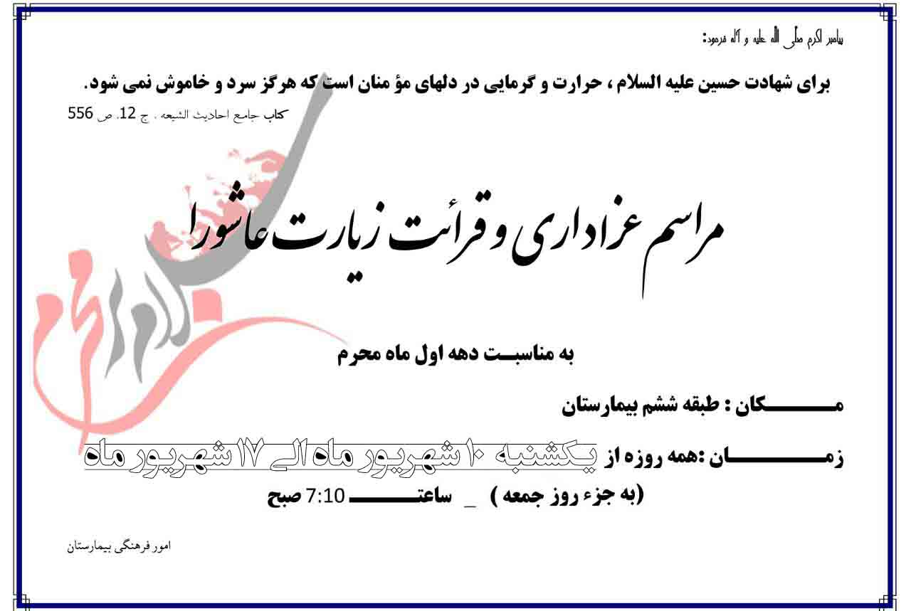 اطلاعیه برگزاری مراسم عزاداری و قرائت زیارت عاشورا