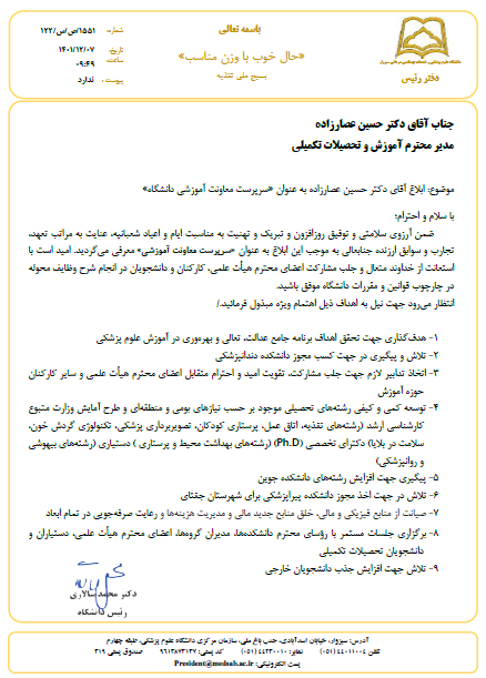 با حکم رئیس دانشگاه علوم پزشکی سبزوار سرپرست معاونت آموزشی دانشگاه منصوب شد.
