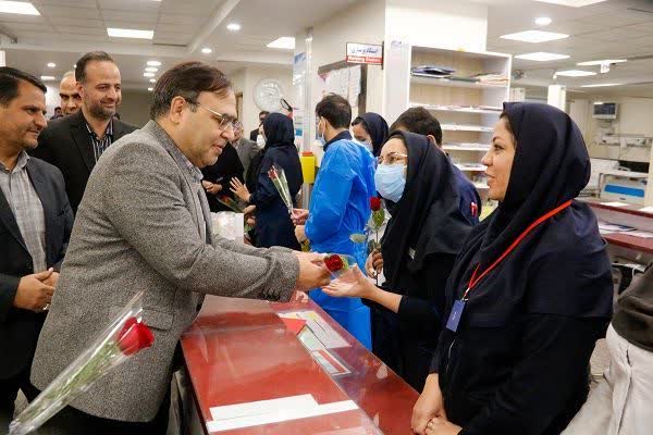 اهدای گل به رسم قدردانی از پرستاران به مناسب روز پرستار