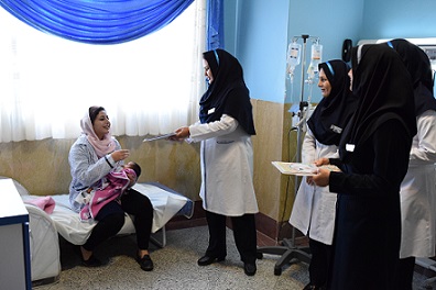 اهدا بسته اموزشی بین مادران شیرده بیمارستان حشمتیه با حضور مدیریت و مدیر پرستاری