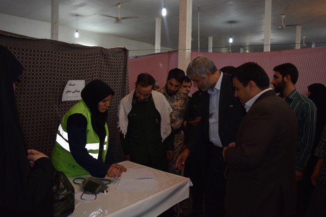مهندس فلاحی فرماندار، مهندس عبدالهی معاون فرماندار و پرسنل سپاه و بسیج شهرستان به صورت جداگانه از محل برپایی ایستگاه سلامت بازدید و تحت معاینه قرار گرفتند./ مهدی تاج مزینانی