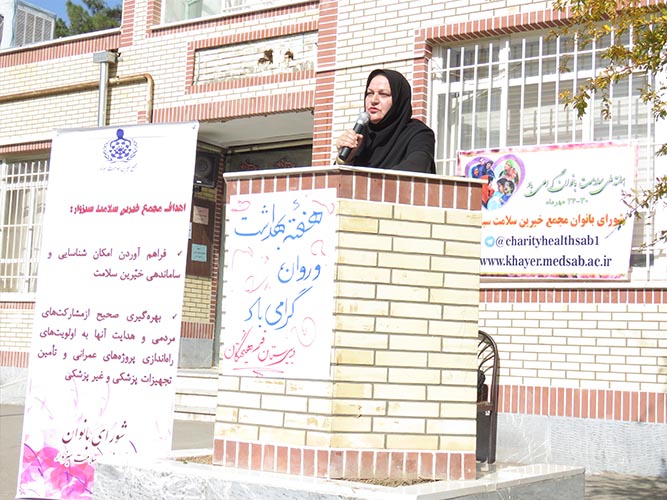 در آستانه «هفته سلامت زنان» و بمنظور ترویج و اشاعه فرهنگ اسلامی در خانه و خانواده بویژه قشر وسیع زنان محترمه، مراسمی تحت عنوان «سلامت روان» در دبیرستان دخترانه فرهیختگان برگزار گردید و خانم مرضیه کیانی(کارشناس ارشد کار درمانی، مدرس دانشگاه و سرپرست مجامع اداره بهزیستی سبزوار) به ایراد سخنرانی پیرامون موضوع فوق پرداختند.