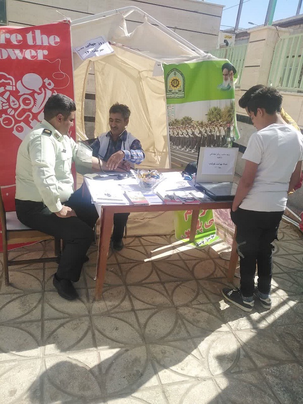 شایان ذکر است در این چادر علاوه بر اندازه گیری فشار خون و انجام مراقبت های اولیه در راستای داشتن قلبی سالم، پوستر ها و پمفلت های مرتبط با مضرات مواد مخدر نصب و در دسترس قرار گرفته بود.