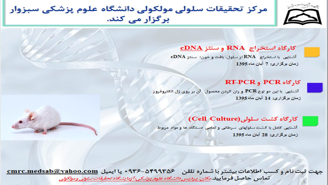 برگزاری سه کارگاه در آبان ماه برگزاری سه کارگاه در آبان ماه 1395 گروه خبری : مرکز تحقیقات سلولی مولکولی کد خبر : 5160 لینک کوتاه : https://medsab.ac.ir/ZvX7 کلمات کلیدی