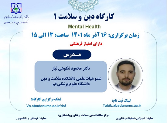 برگزاری مجموعه کارگاه های مرکز مطالعات دین،سلامت و فناوری دانشگاه علوم پزشکی آبادان دارای امتیاز فرهنگی