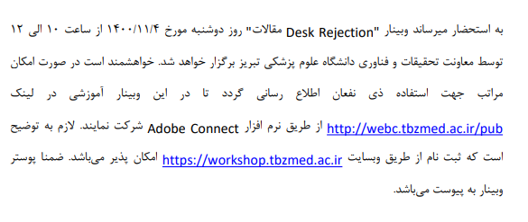 روابط عمومی معاونت تحقیقات و فناوری دانشگاه؛ برگزاری وبینار Desk Rejection مقالات گروه خبری : معاونت تحقیقات و فناوری کد خبر : 14108 لینک کوتاه : https://medsab.ac.ir/Zuza کلمات کلیدی